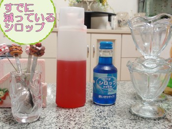 見るからに体に悪そうな色をしているブルーハワイシロップは新入りです。