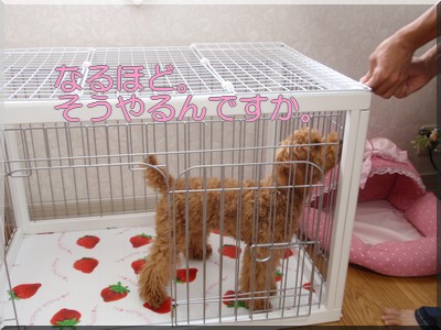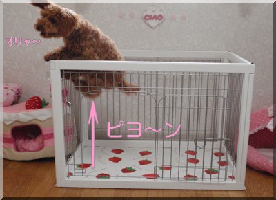 ハウスにジャンプ防止の屋根をつけ、ハウスに慣れさせる様にアドバイスくださったので