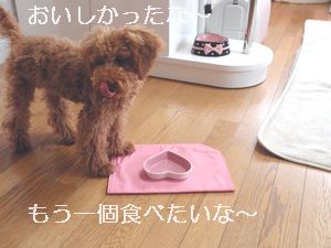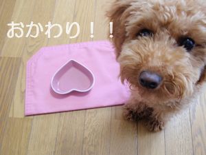 今日初めてのフィラリア予防薬だから、記念にお皿にいれて・・・