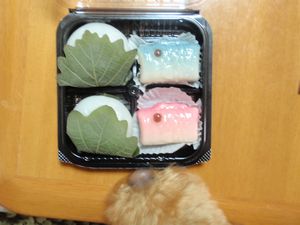 鯉のぼりの和菓子です.(和菓子を狙う誰かさんの鼻が写っていますが・・・)