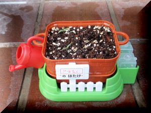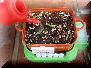 この栽培キット、ミニジョウロもついていて、とってもかわいいのです